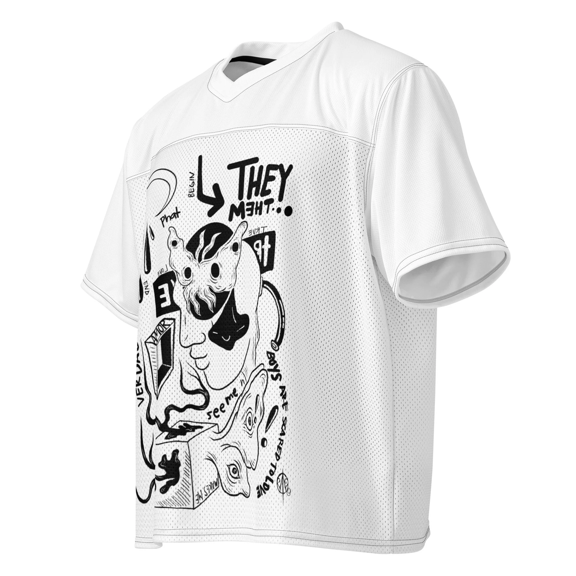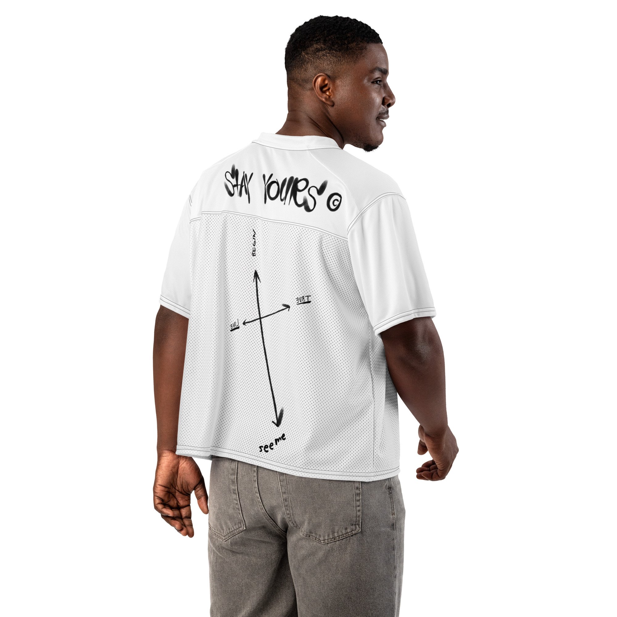A breathable football jersey with silky top fabric and heavy mesh bottom. Moisture-wicking, 2-way stretch, and relaxed fit.